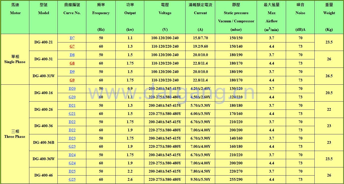 ?達鋼風機型號 DG-100-16,DG-200-16,DG-300-16,DG-300-26,DG-300-36,DG-400-6 , DG-400-26,DG-400-36,DG-400-46 DG-600-16,DG600-26,DG-600-36,DG-800-16, DG-800-26,DG-900-16,DG-...